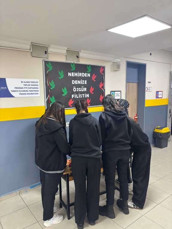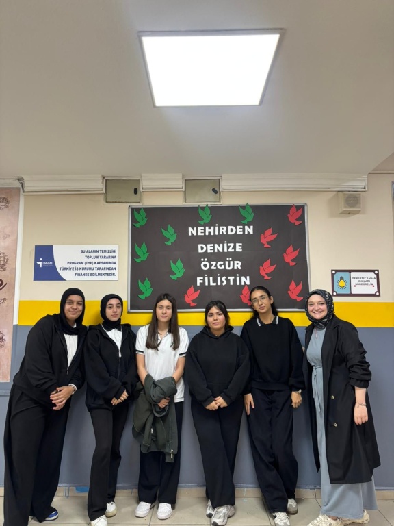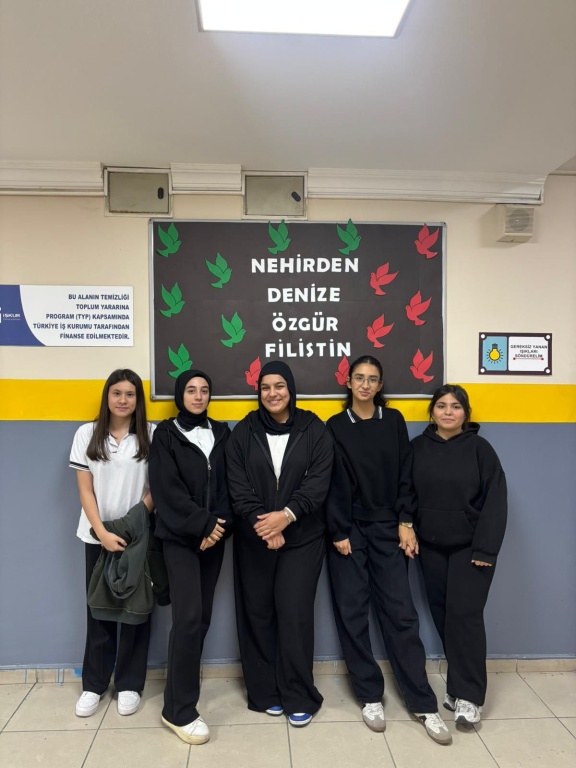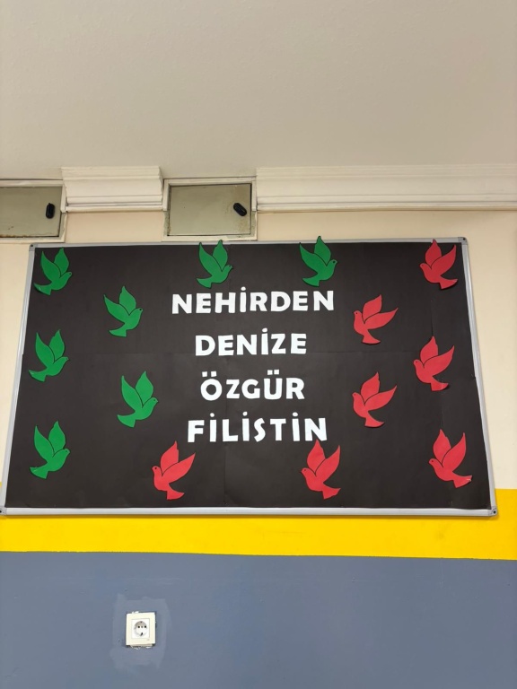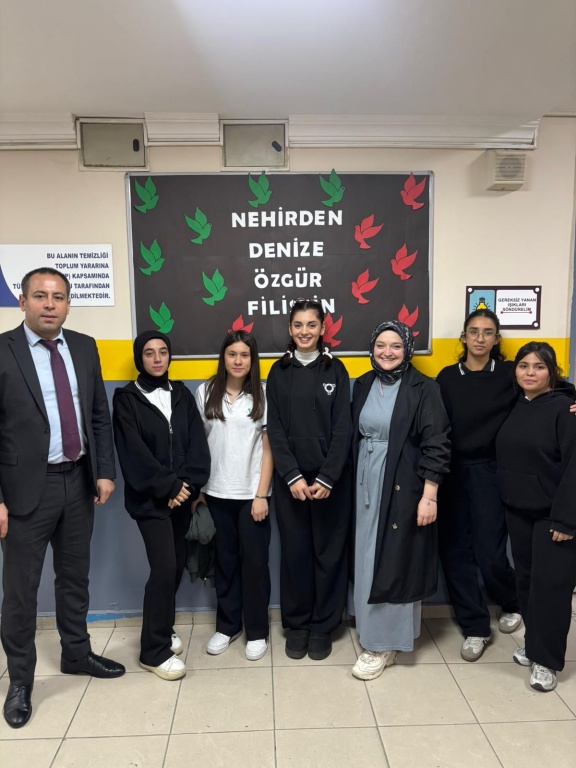 Din kültürü öğretmenimiz Esra GÜNDOĞDU ve öğrencilerimiz Çedes Projesi (Çevreme Duyarlıyım Değerlerime Sahip Çıkıyorum) kapsamında Filistin'de yaşanan drama karşı farkındalık oluşturmak amacıyla okulumuzda çeşitli etkinliklere imza atmışlardır.